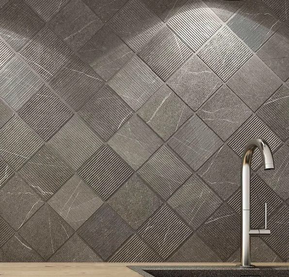 Для реализации этой схемы лучше выбирать квадратные плиточные модули. Они могут быть как однотонными, так и с интересным узором.